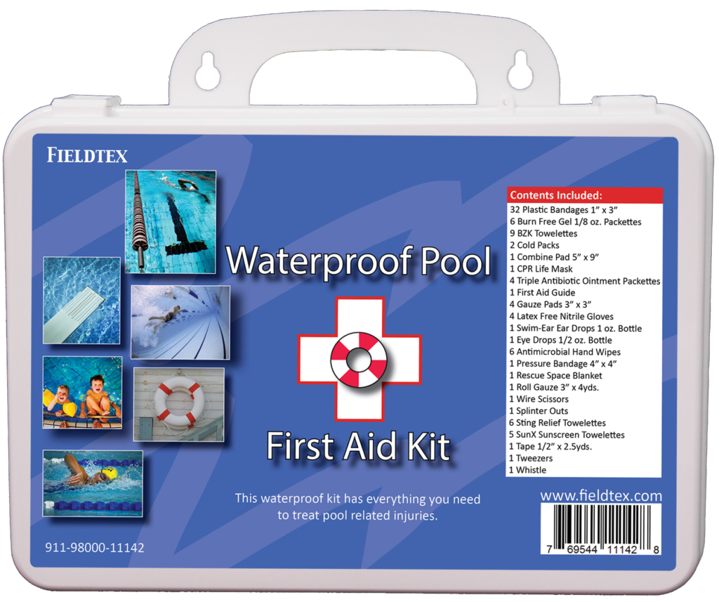 Swimming Pool First Aid Kit: Just in time for summer, our Swimming Pool First Aid Kit is perfect to keep with you by any body of water. Its contents are meant to treat minor safety injuries, and it is easy to mount on any surface. Plus, when closed the kit becomes waterproof! Make sure to bring this kit by your side this summer.